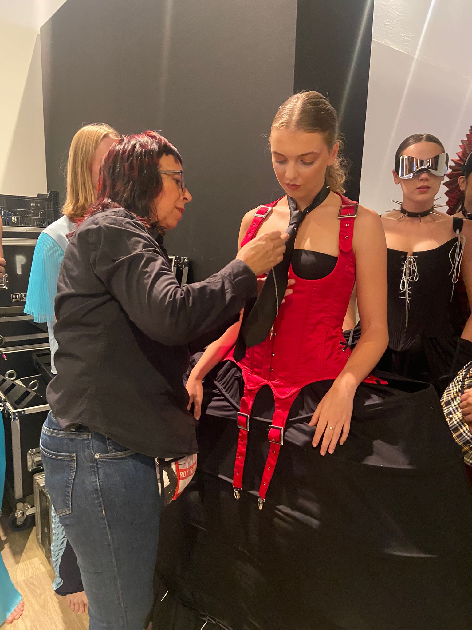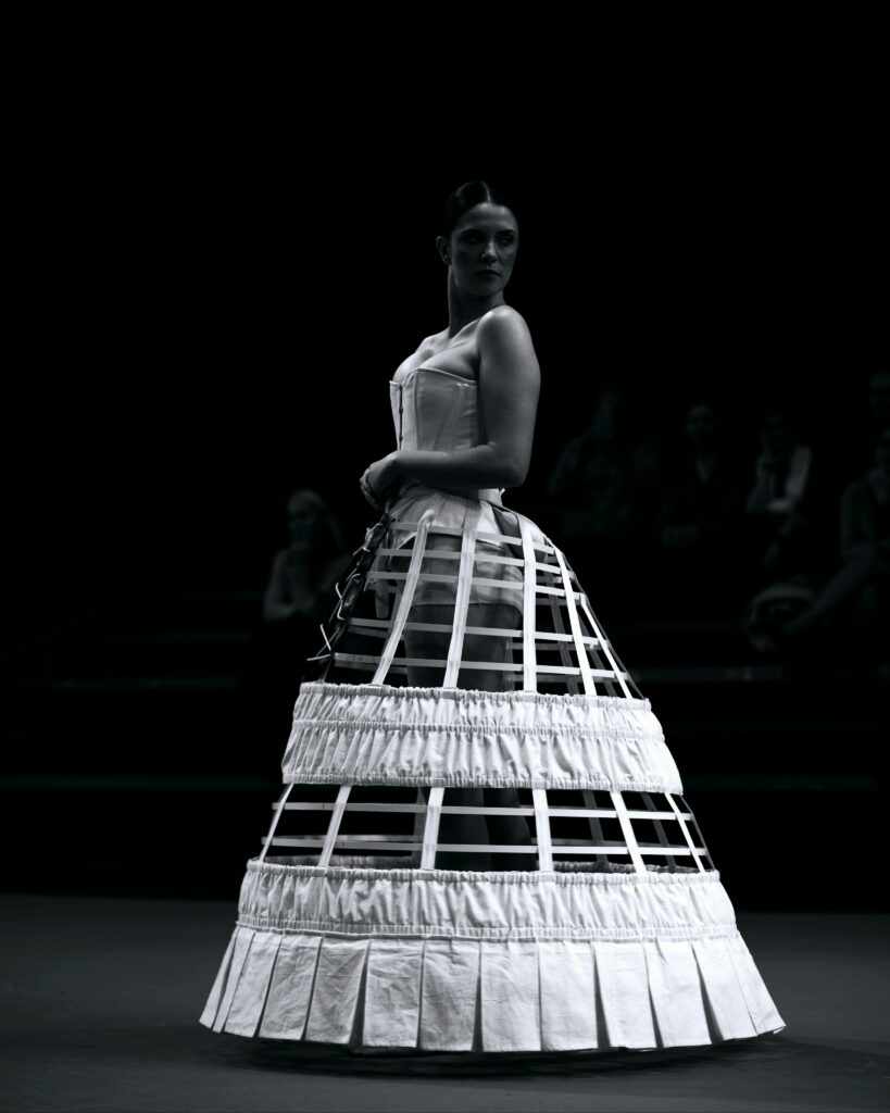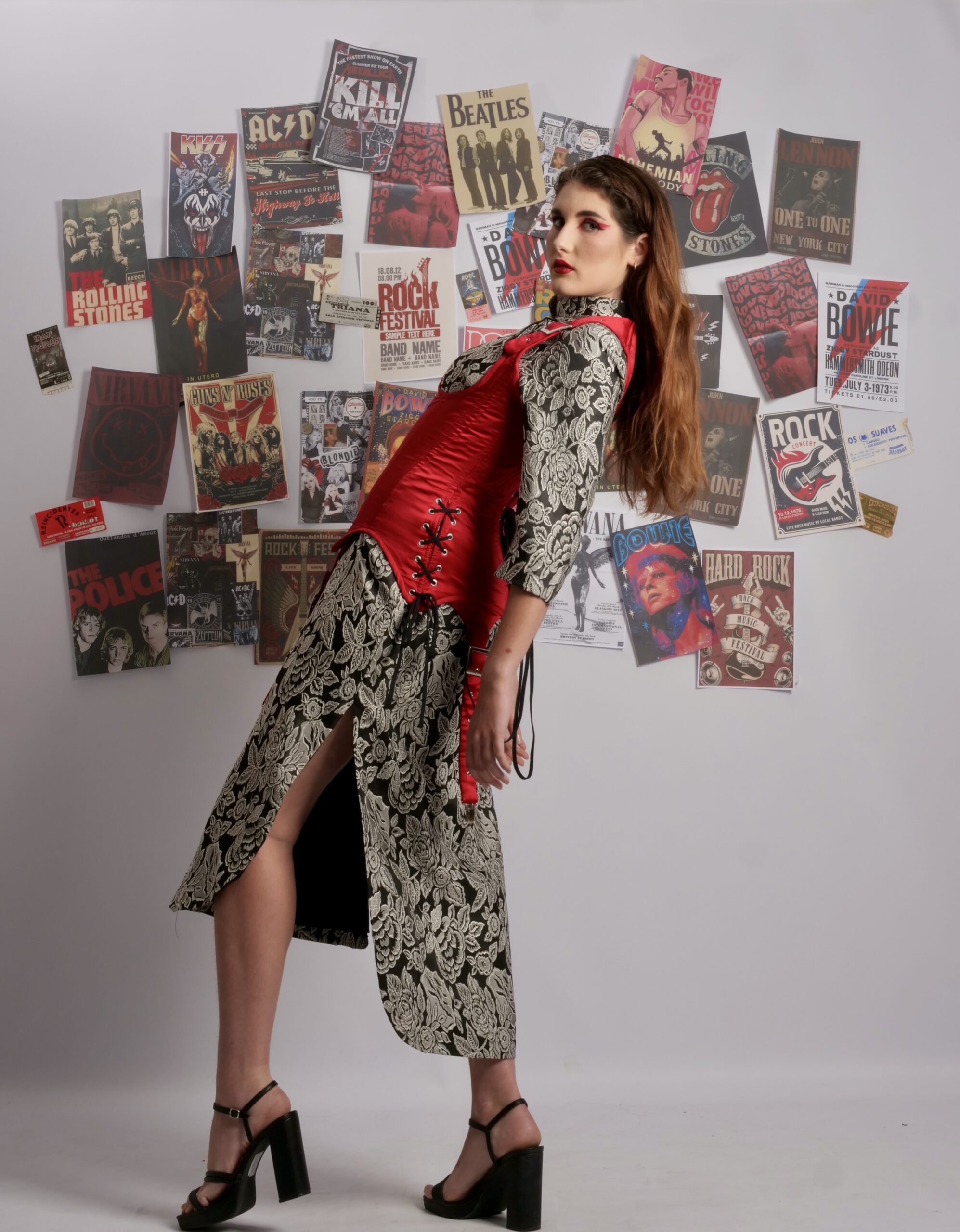Creadora de moda que fusiona estructuras históricas (crinolinas, paniers, polisones, corset…) con la energía rebelde del rock. Mis diseños reescriben el pasado para transformarlo en empoderamiento, libertad y presencia.Rescatando técnicas y oficios antiguos a través de la historia, la música y el arte.