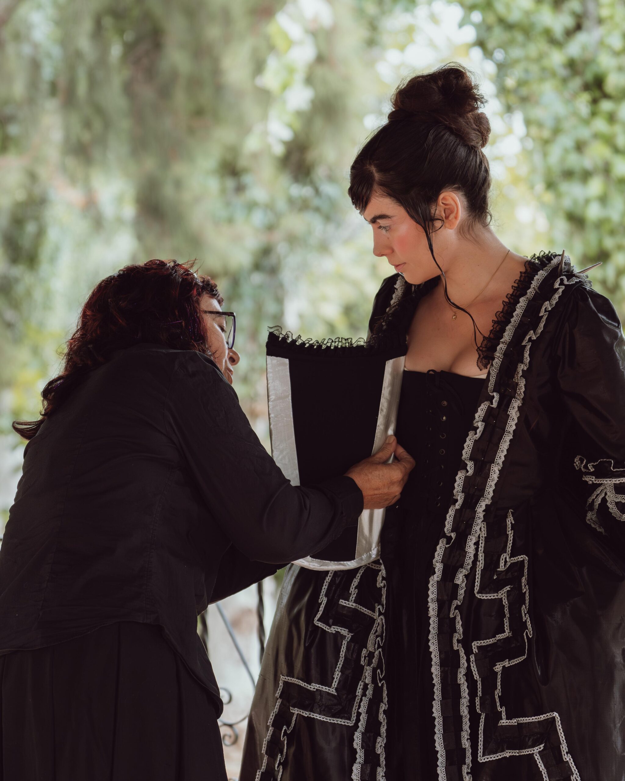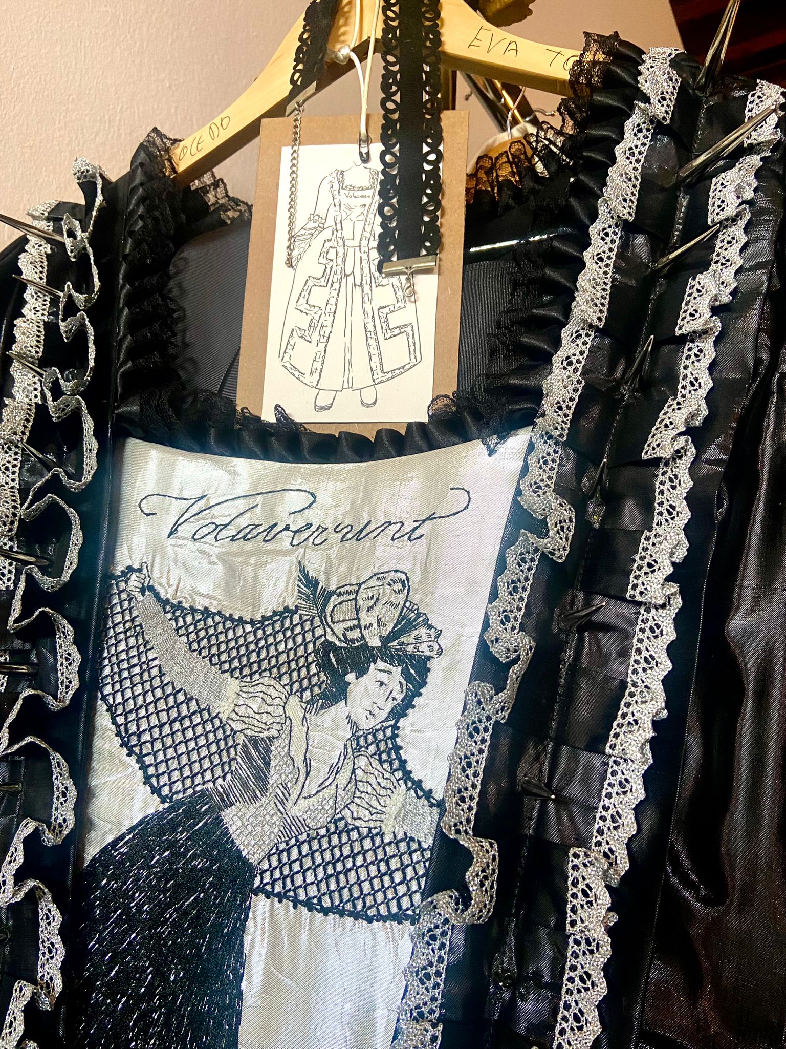 La costura, que siempre había estado presente en mi vida de forma más discreta, de mano de mi madre, empezó a tomar protagonismo cuando me adentré en el estudio del vestuario histórico,el patronaje y el diseño. Ese fue el punto en el que todas mis inquietudes se unieron y mi estética empezó a definirse con claridad: una reinterpretación del vestuario de los siglos pasados filtrada por mi espíritu Roquero y mi manera de entender la rebeldía.