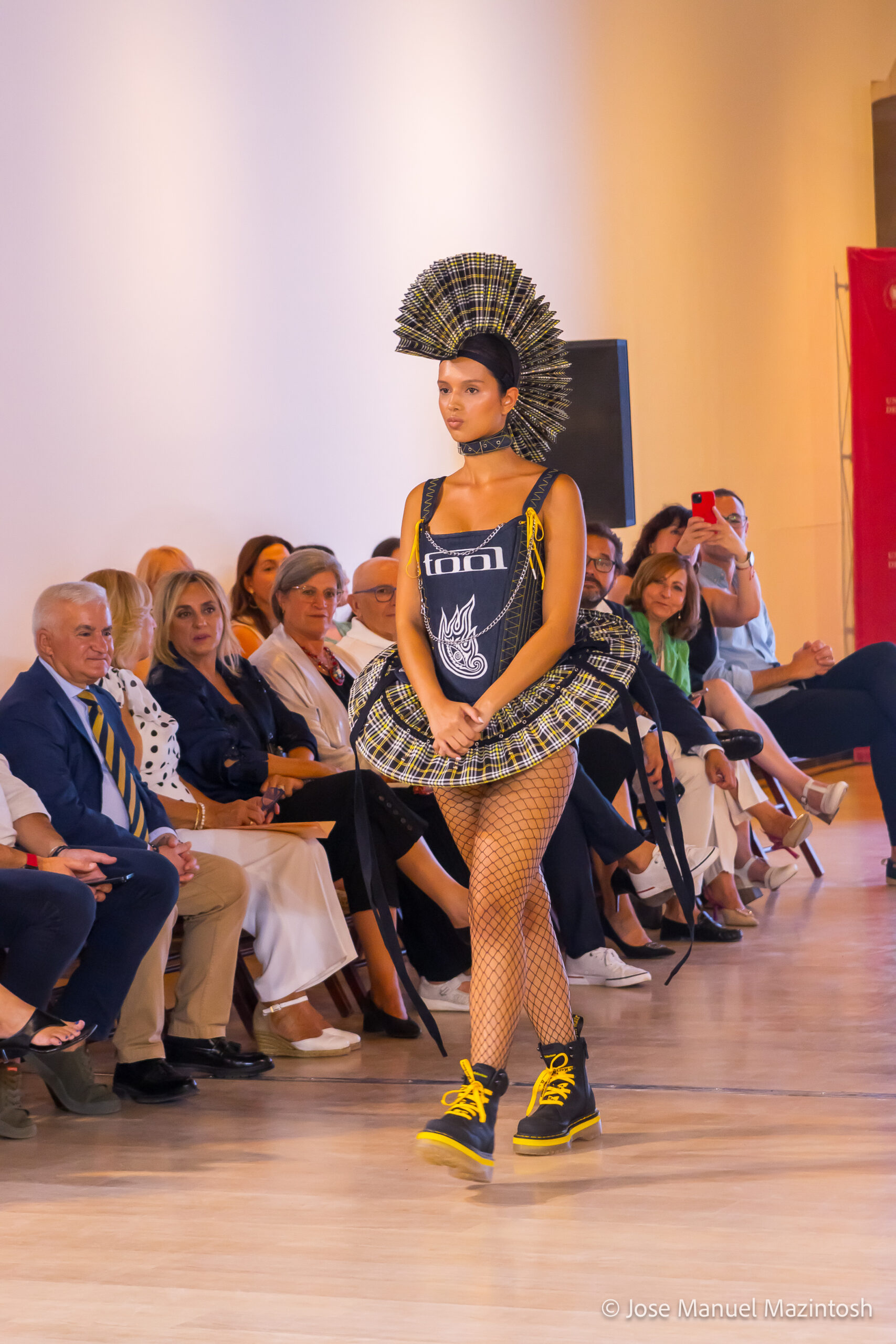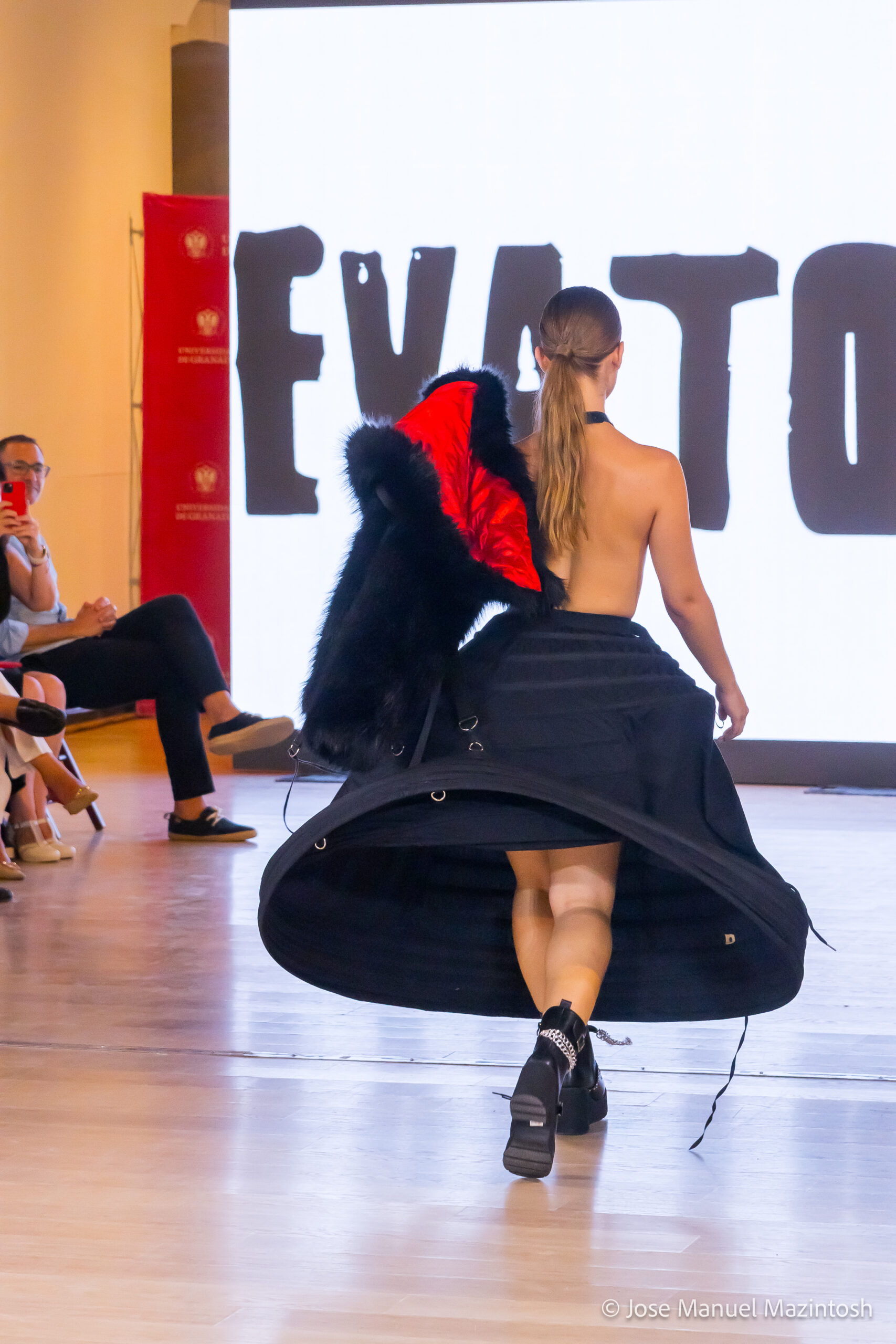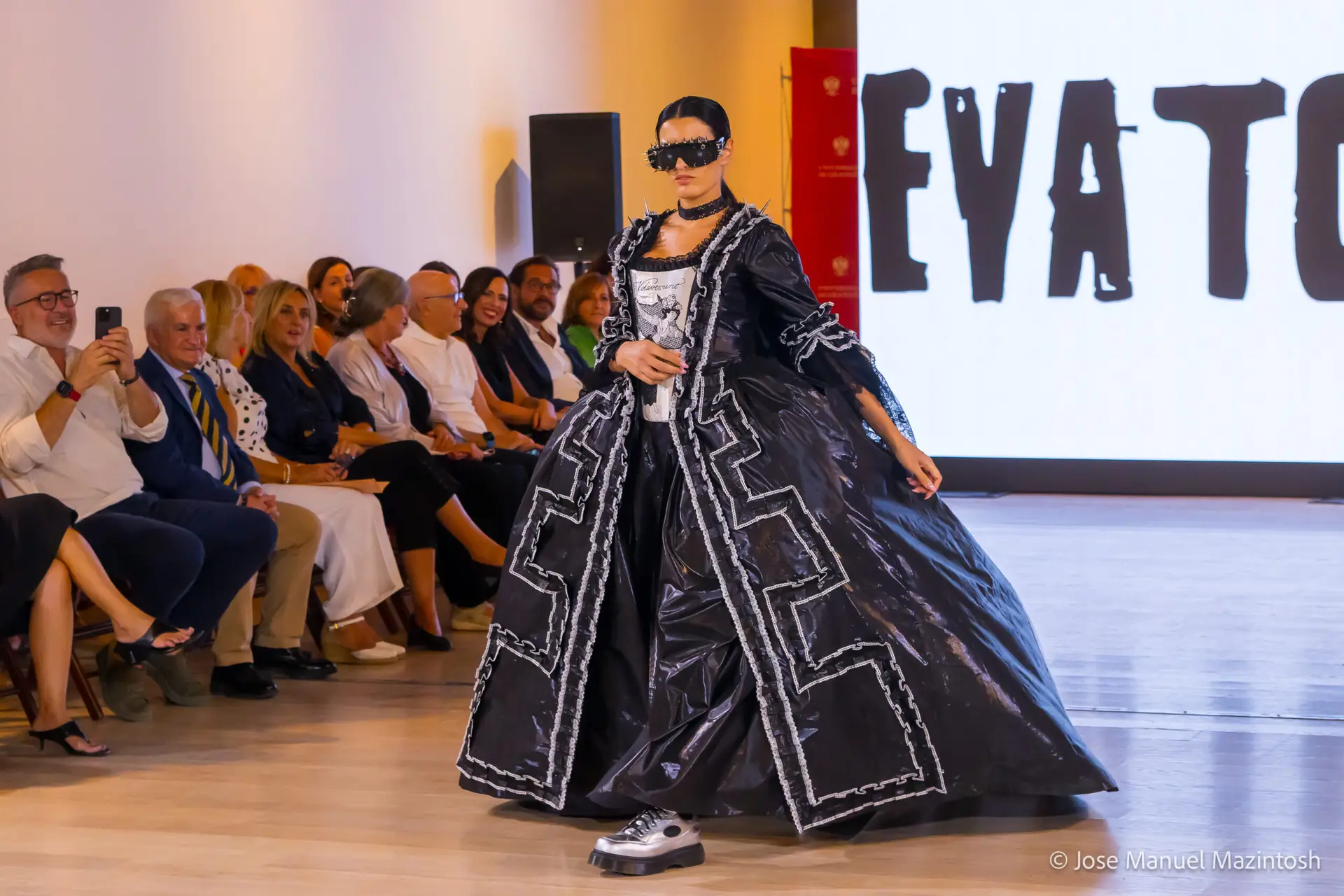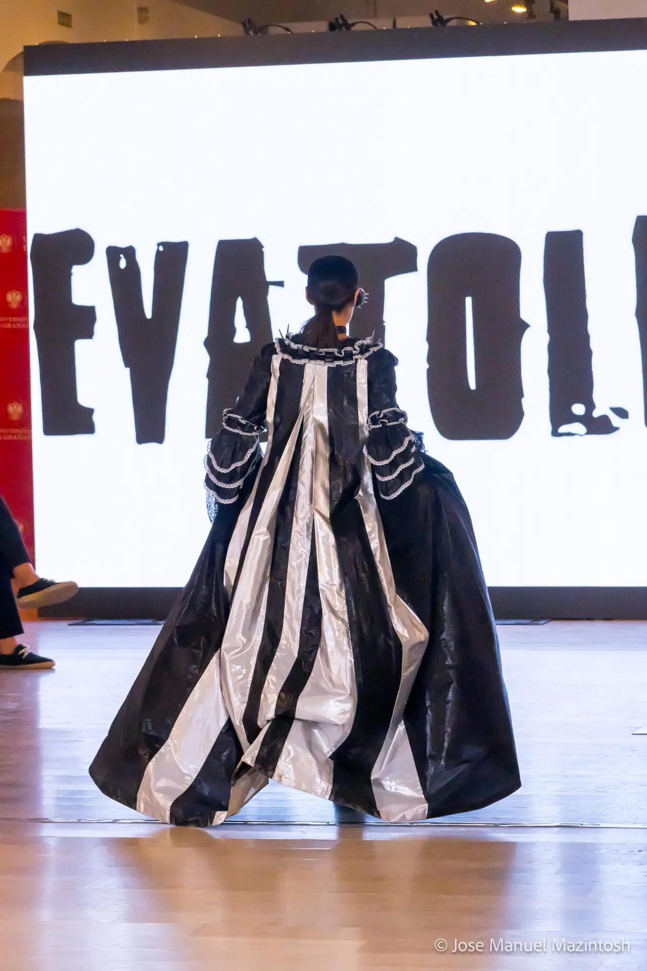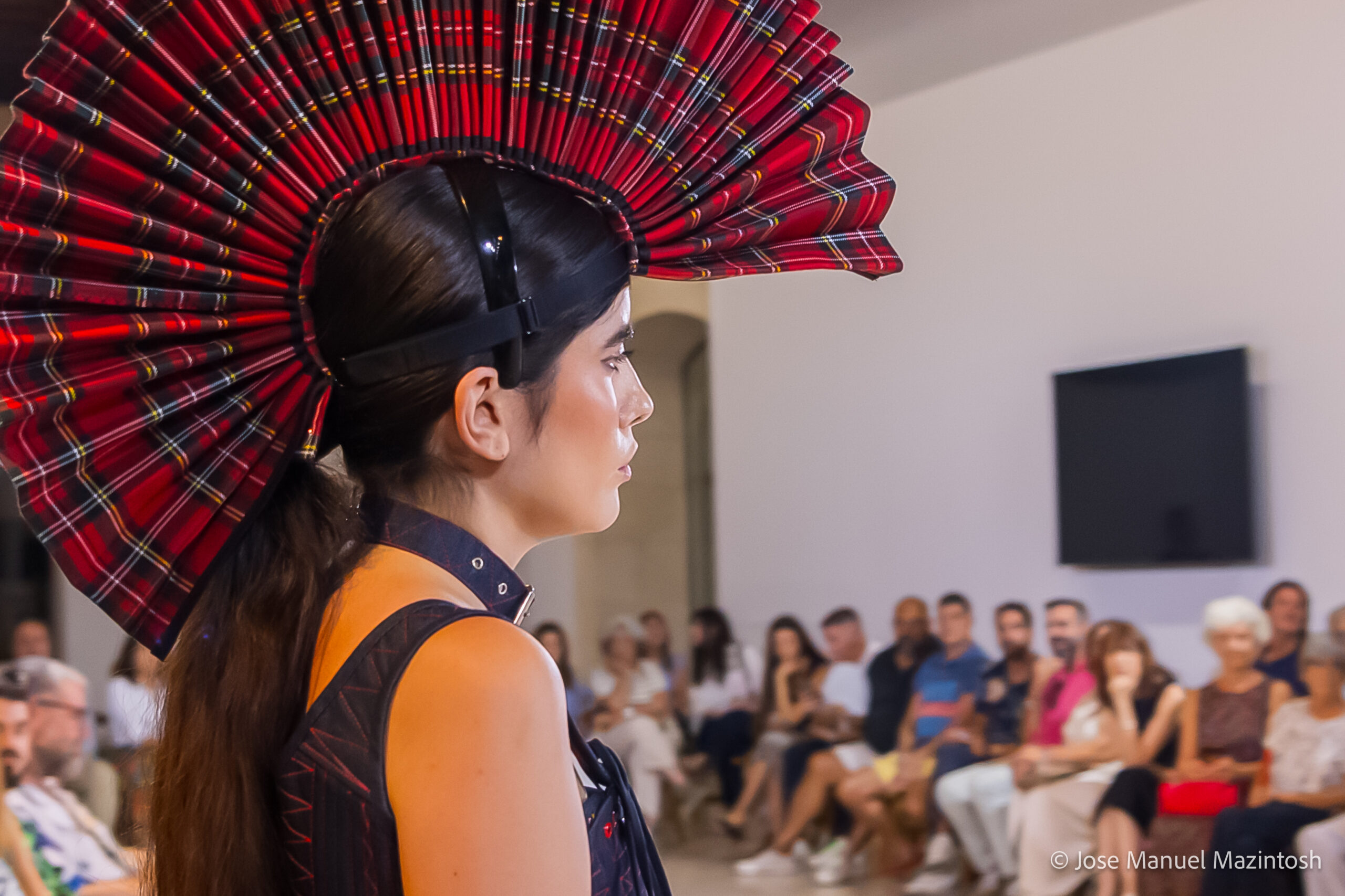 Fui seleccionada y presento mi primera colección VOLAVERUNT inspirada en Francisco De Goya, concretamente en su grabado “Volaverunt” y en la excelente visión cinematográfica de Bigas Luna, y la excelente interpretación de Aitana Sánchez Gijón. Es un homenaje a los comienzos de la liberación femenina y por ello una reverencia a todas las mujeres luchadoras a lo largo de la historia. Un viaje desde la opresión hacia el vuelo. Una colección que reinterpreta estructuras históricas a través de la energía del rock. Aquí, lo que antes limitaba ahora impulsa. Lo que aprisionaba, ahora libera. Volaverunt es fuerza, presencia y emancipación. Esta colección no decora, desobedece. No es moda, es resistencia vestida de arte.