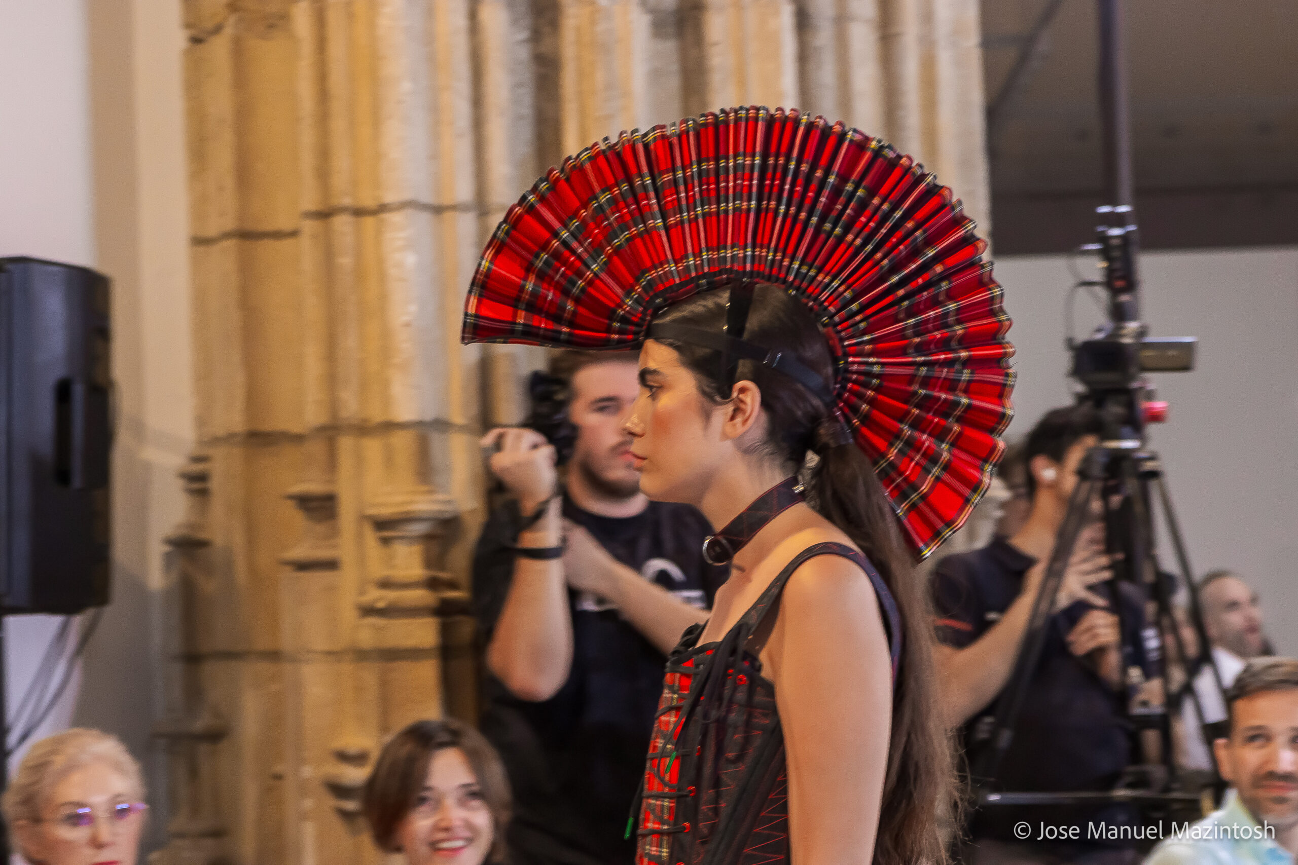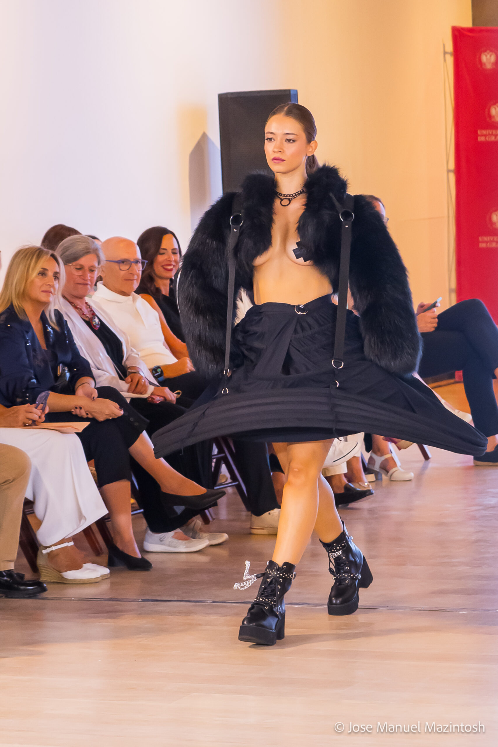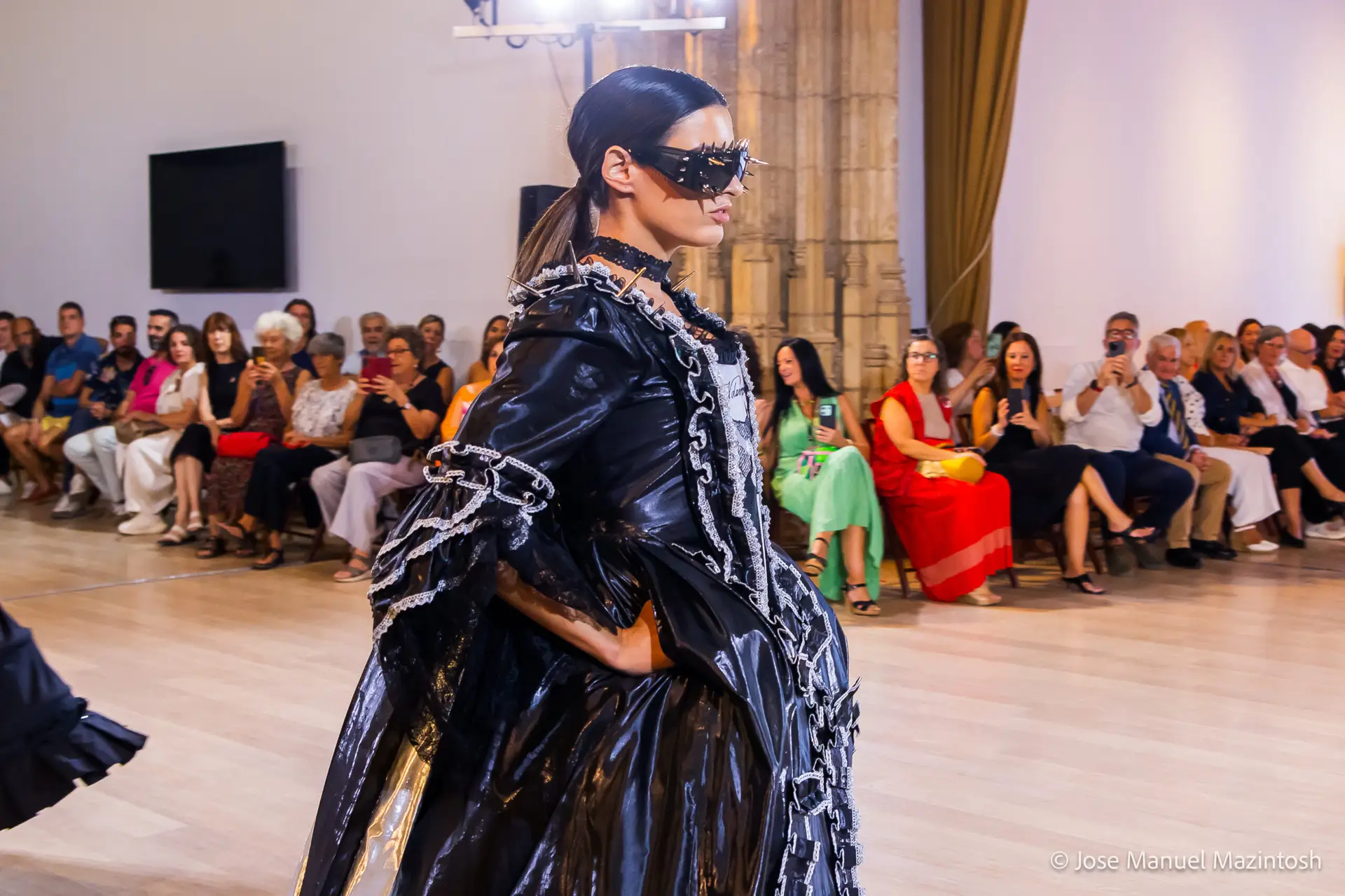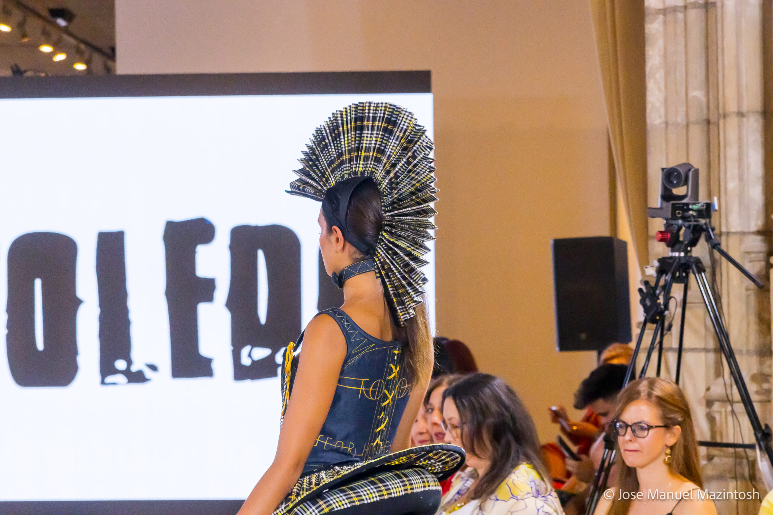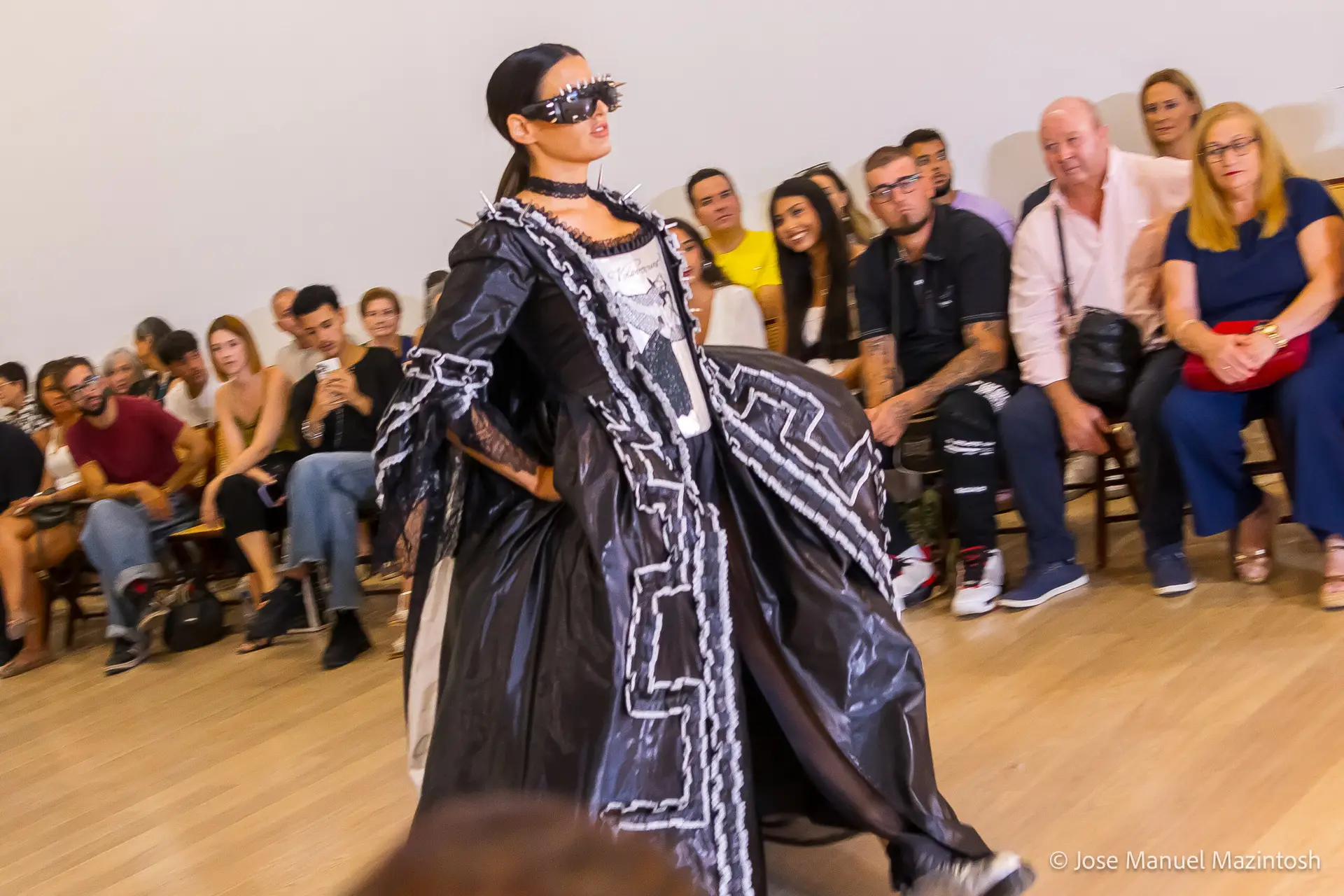Fui seleccionada y presento mi primera colección VOLAVERUNT inspirada en Francisco De Goya, concretamente en su grabado “Volaverunt” y en la excelente visión cinematográfica de Bigas Luna, y la excelente interpretación de Aitana Sánchez Gijón. Es un homenaje a los comienzos de la liberación femenina y por ello una reverencia a todas las mujeres luchadoras a lo largo de la historia. Un viaje desde la opresión hacia el vuelo. Una colección que reinterpreta estructuras históricas a través de la energía del rock. Aquí, lo que antes limitaba ahora impulsa. Lo que aprisionaba, ahora libera. Volaverunt es fuerza, presencia y emancipación. Esta colección no decora, desobedece. No es moda, es resistencia vestida de arte.