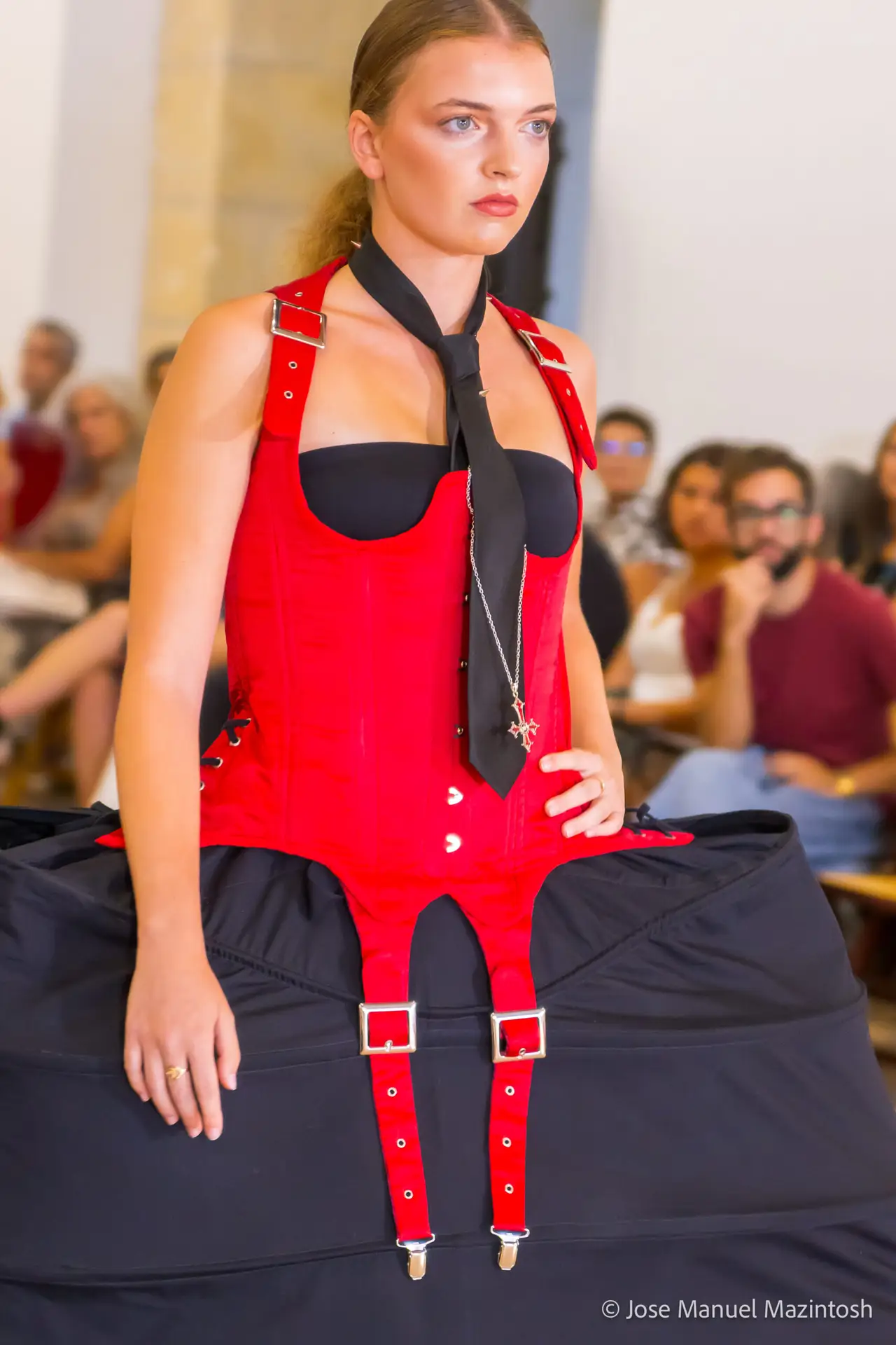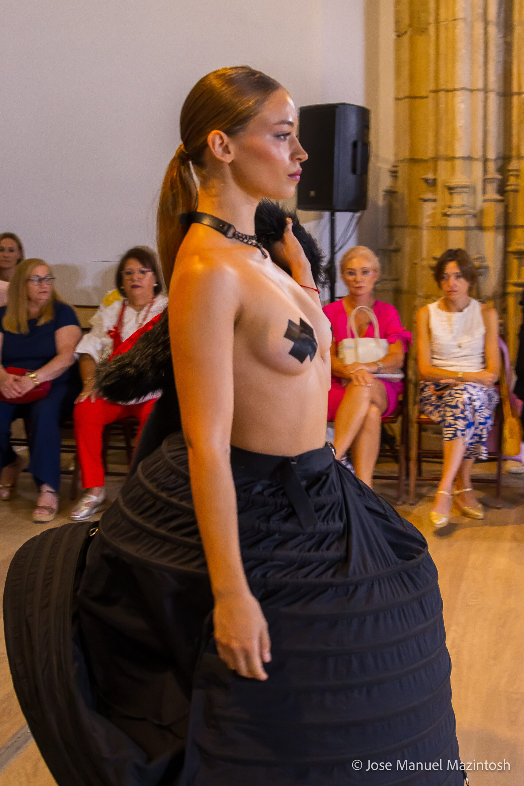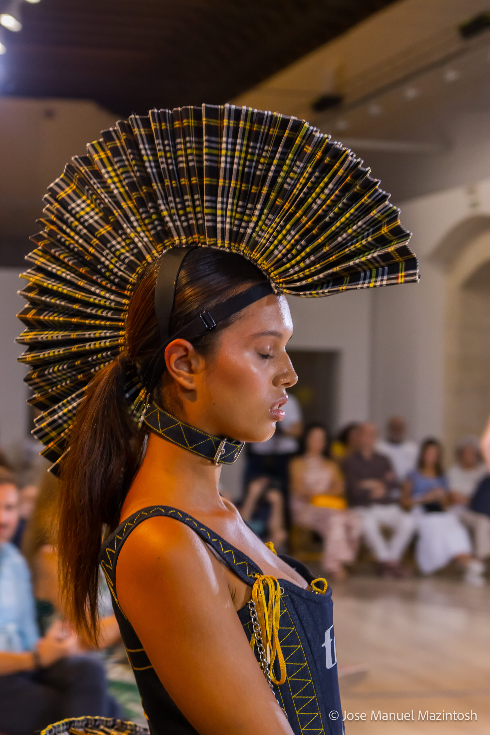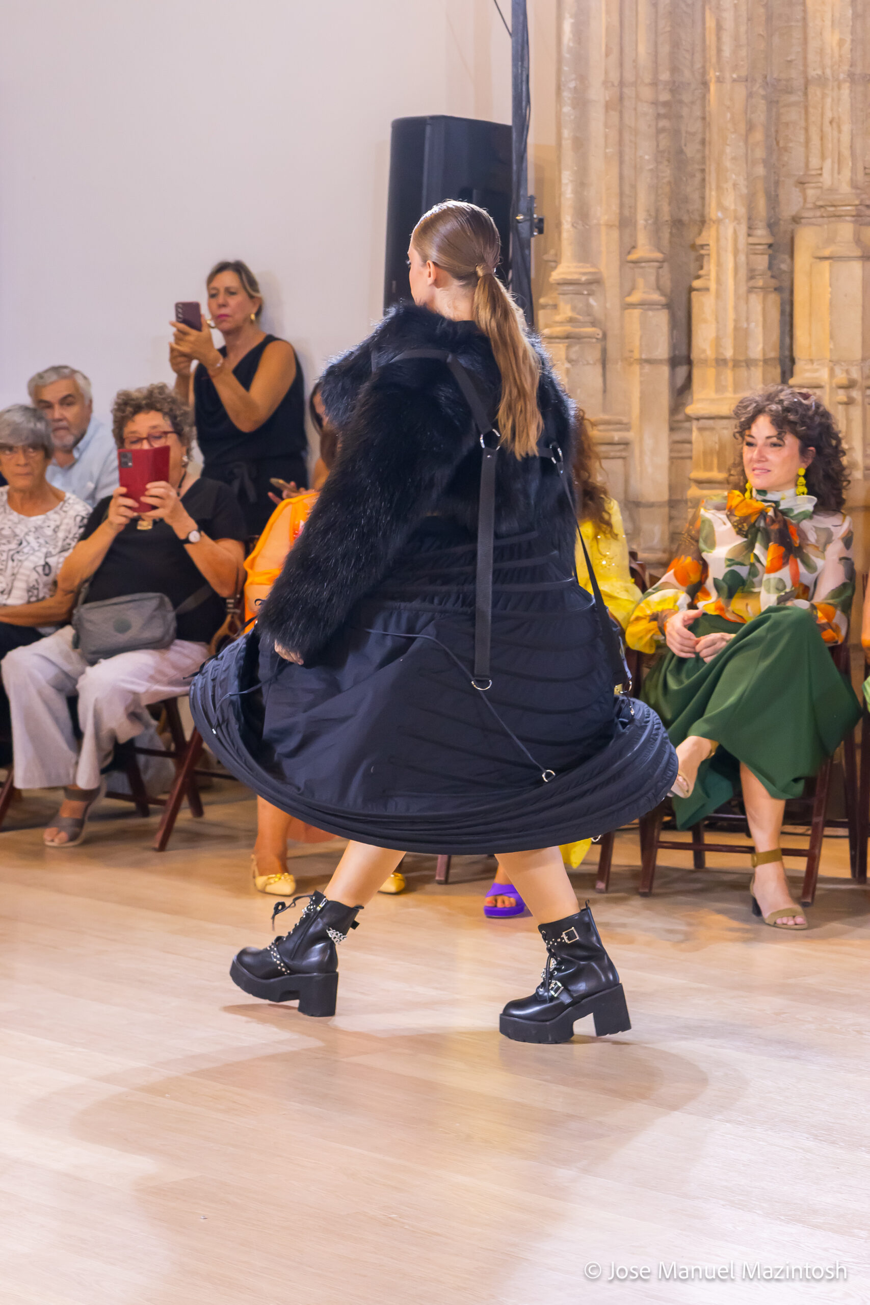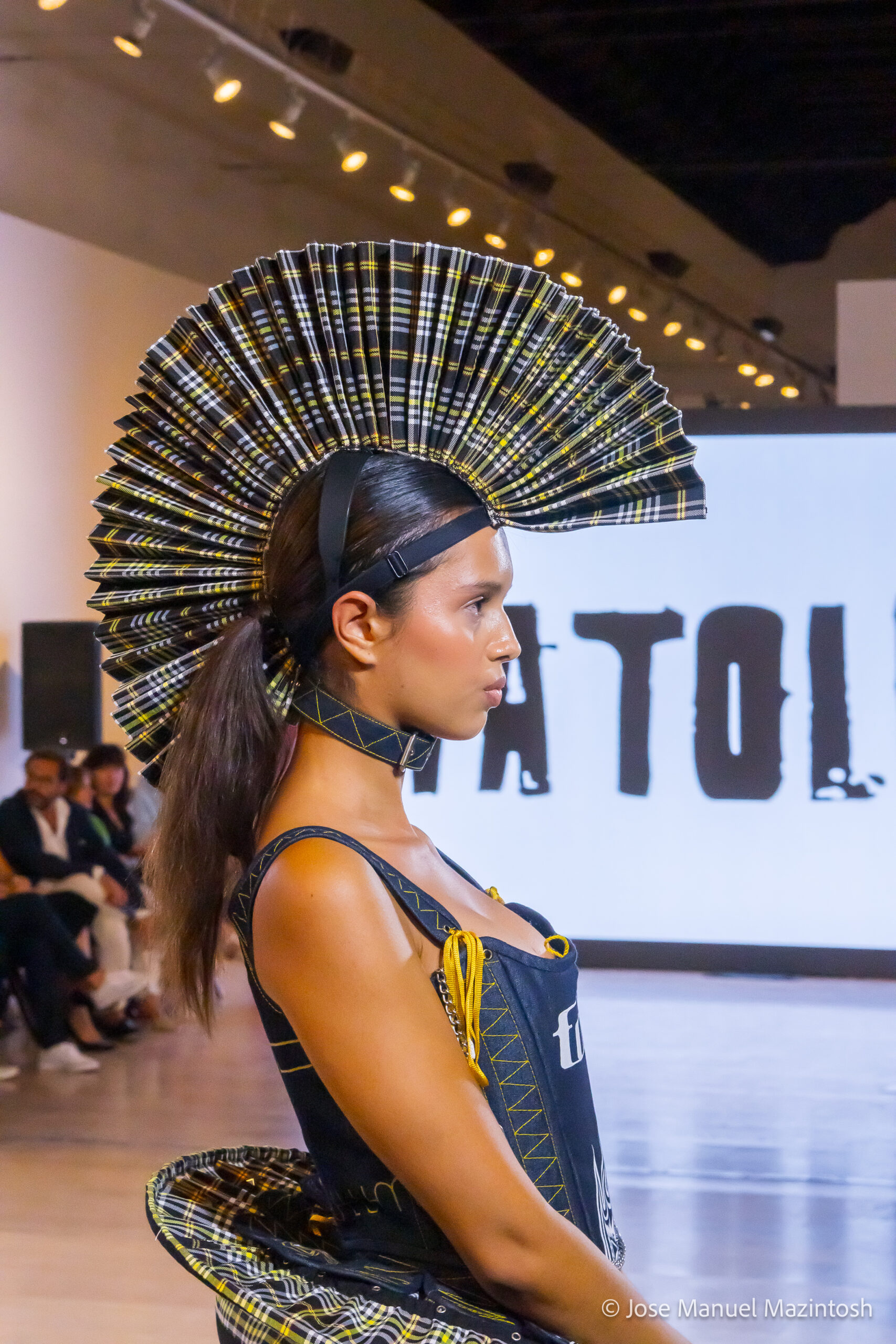Fui seleccionada y presento mi primera colección VOLAVERUNT inspirada en Francisco De Goya, concretamente en su grabado “Volaverunt” y en la excelente visión cinematográfica de Bigas Luna, y la excelente interpretación de Aitana Sánchez Gijón. Es un homenaje a los comienzos de la liberación femenina y por ello una reverencia a todas las mujeres luchadoras a lo largo de la historia. Un viaje desde la opresión hacia el vuelo. Una colección que reinterpreta estructuras históricas a través de la energía del rock. Aquí, lo que antes limitaba ahora impulsa. Lo que aprisionaba, ahora libera. Volaverunt es fuerza, presencia y emancipación. Esta colección no decora, desobedece. No es moda, es resistencia vestida de arte.
