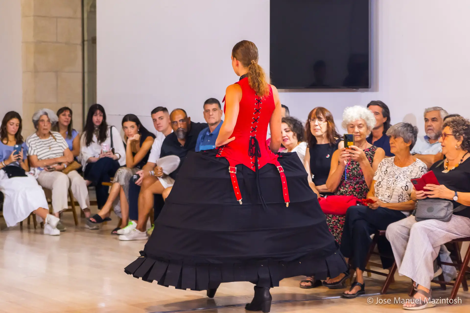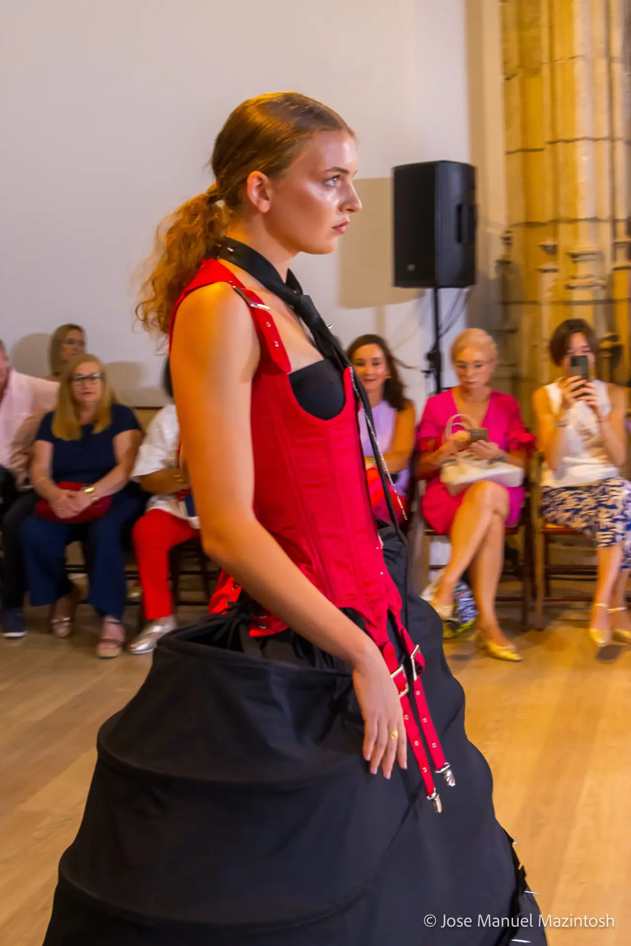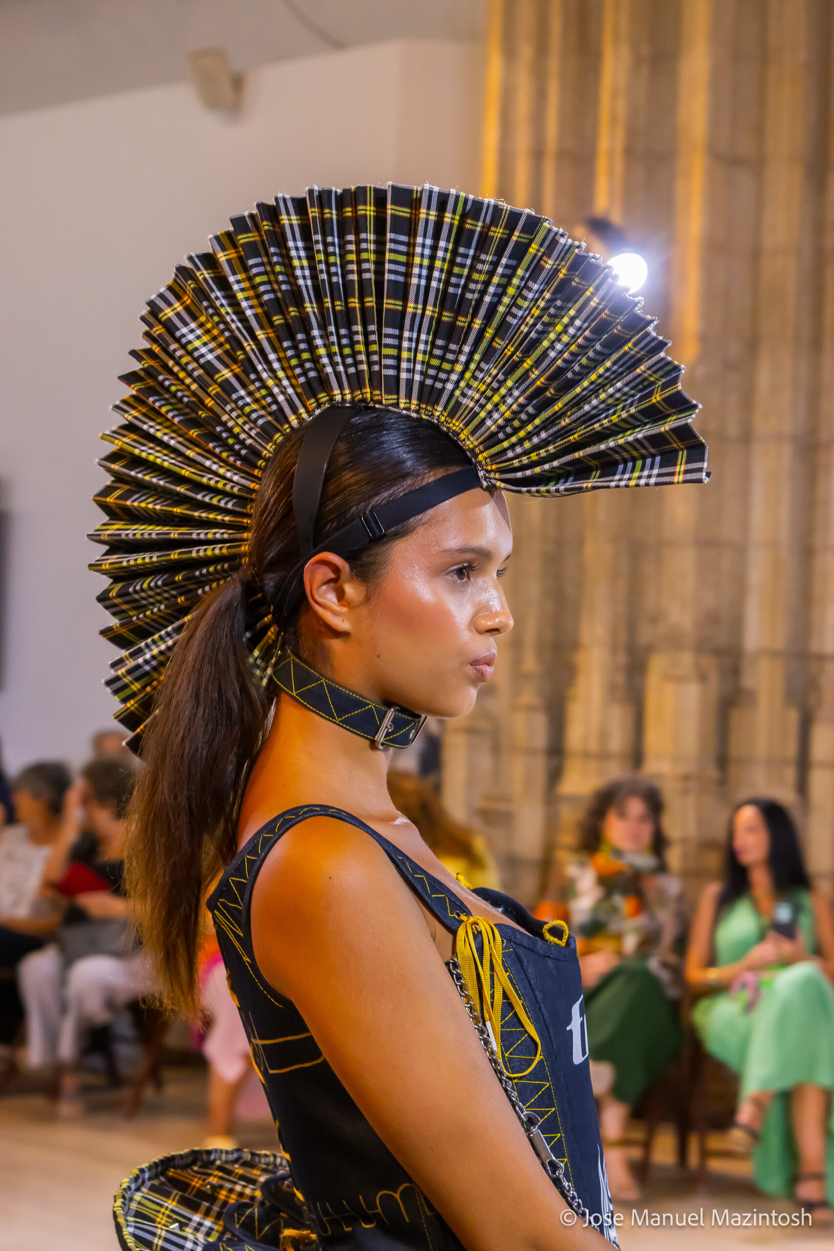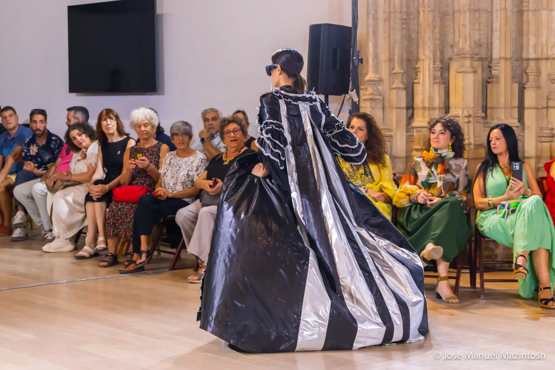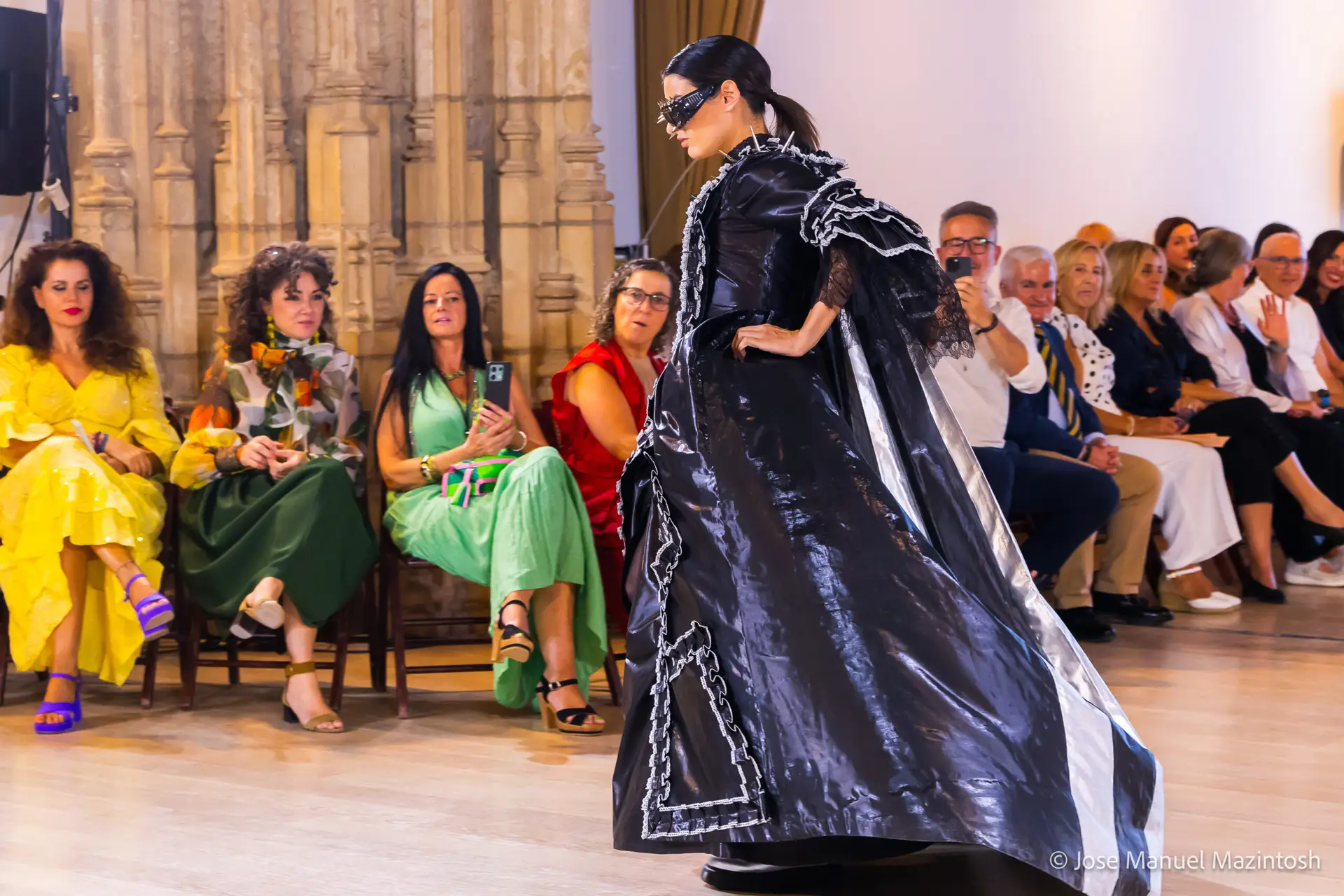 Fui seleccionada y presento mi primera colección VOLAVERUNT inspirada en Francisco De Goya, concretamente en su grabado “Volaverunt” y en la excelente visión cinematográfica de Bigas Luna, y la excelente interpretación de Aitana Sánchez Gijón. Es un homenaje a los comienzos de la liberación femenina y por ello una reverencia a todas las mujeres luchadoras a lo largo de la historia. Un viaje desde la opresión hacia el vuelo. Una colección que reinterpreta estructuras históricas a través de la energía del rock. Aquí, lo que antes limitaba ahora impulsa. Lo que aprisionaba, ahora libera. Volaverunt es fuerza, presencia y emancipación. Esta colección no decora, desobedece. No es moda, es resistencia vestida de arte.
